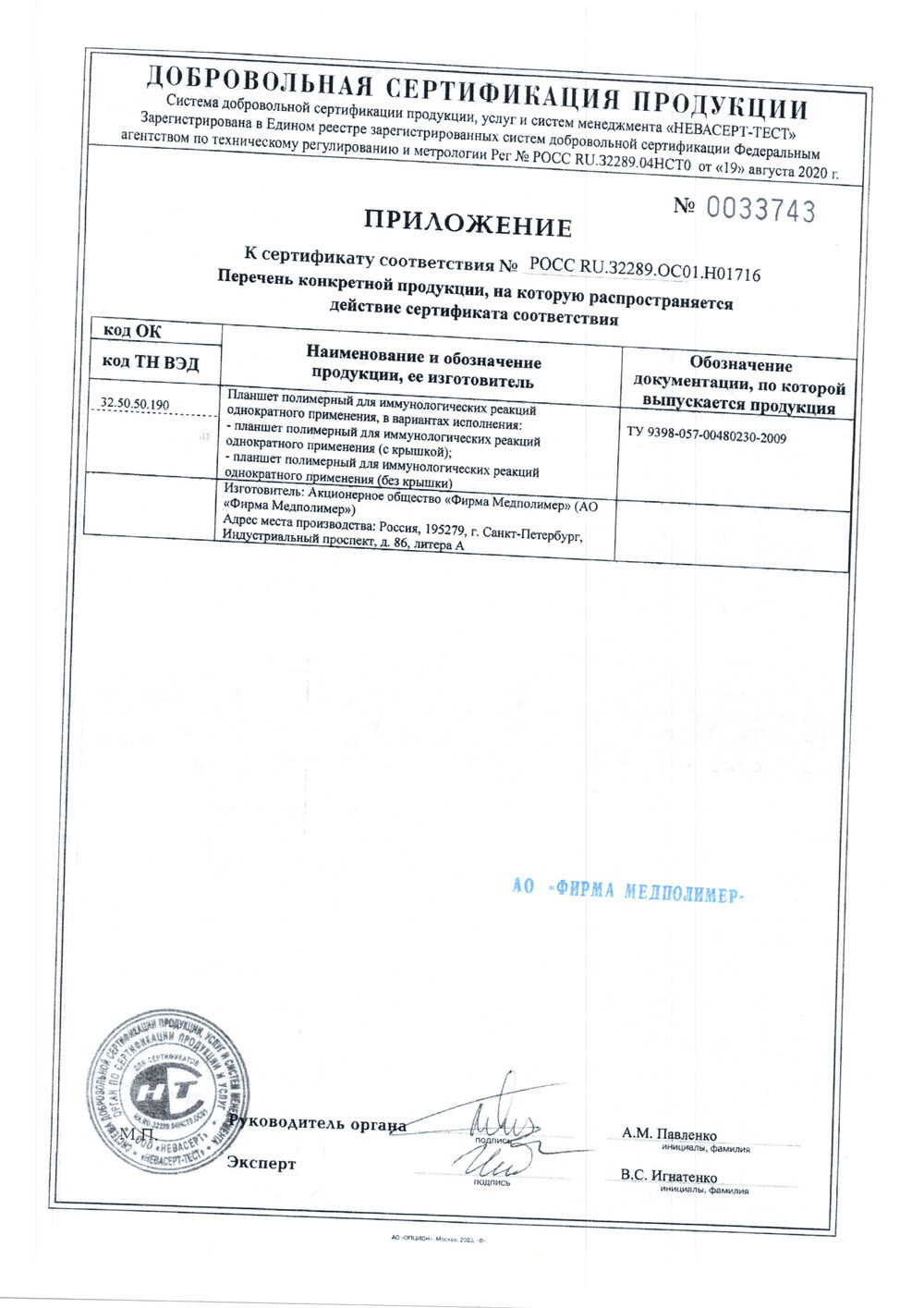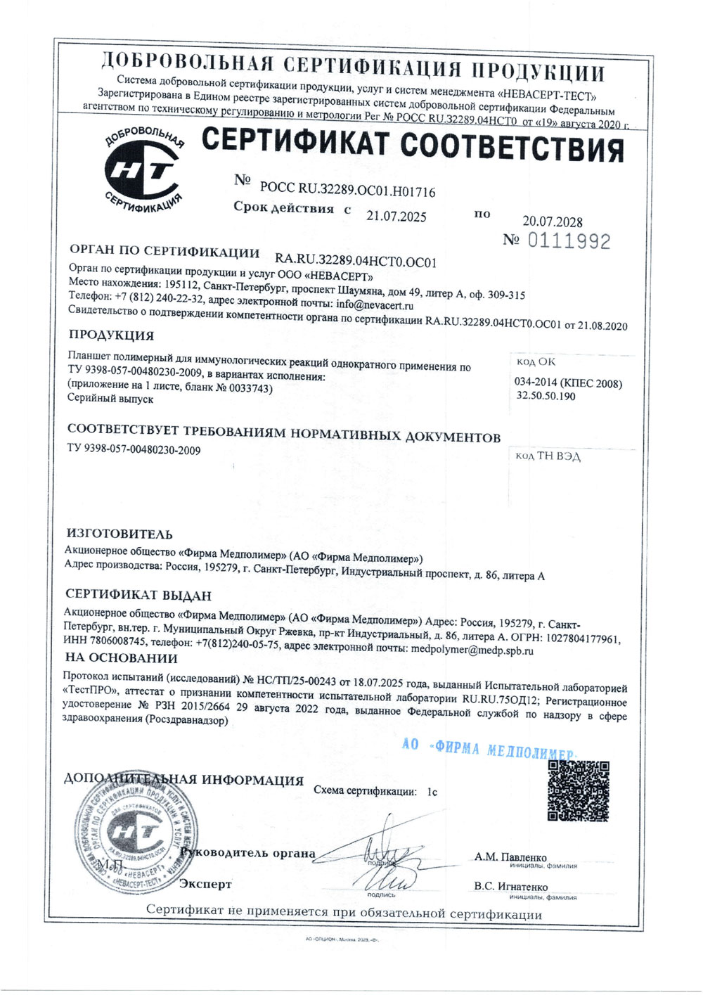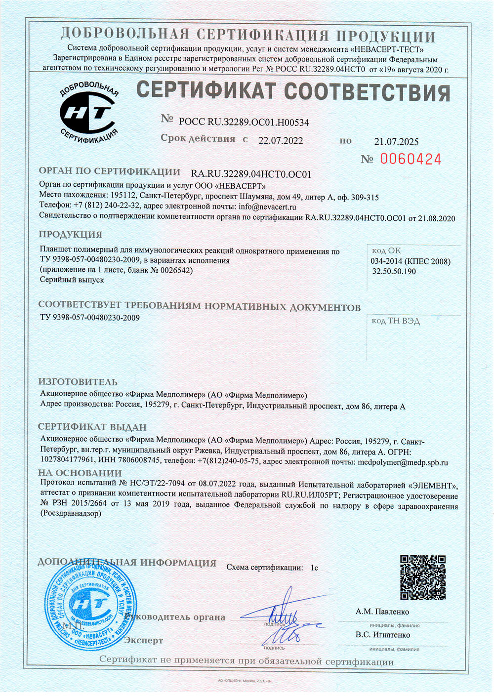 - Планшет полимерный для иммунологических реакций. Медполимер. Сертификат до 20.07