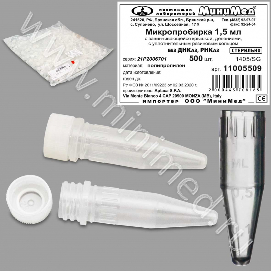 Микропробирка 1,5 мл, п/п, с завинч.крышкой,стер.,с уплотн.резиновым кольцом,б/ДНК-аз,РНК-аз,уп.500 шт/1000, Aptaca