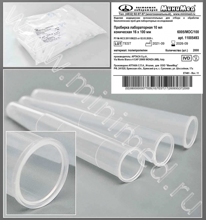 Пробирка предназначена для биологических жидкостей. Имеет круговую градуировку для определения ориентировочного объема (0,5-1,0-2,5-5,0-10,0 мл). Относительная центробежная сила, действующая на пробирку, не должна превышать 5000 g.