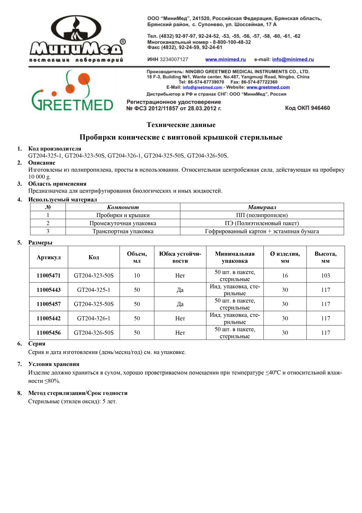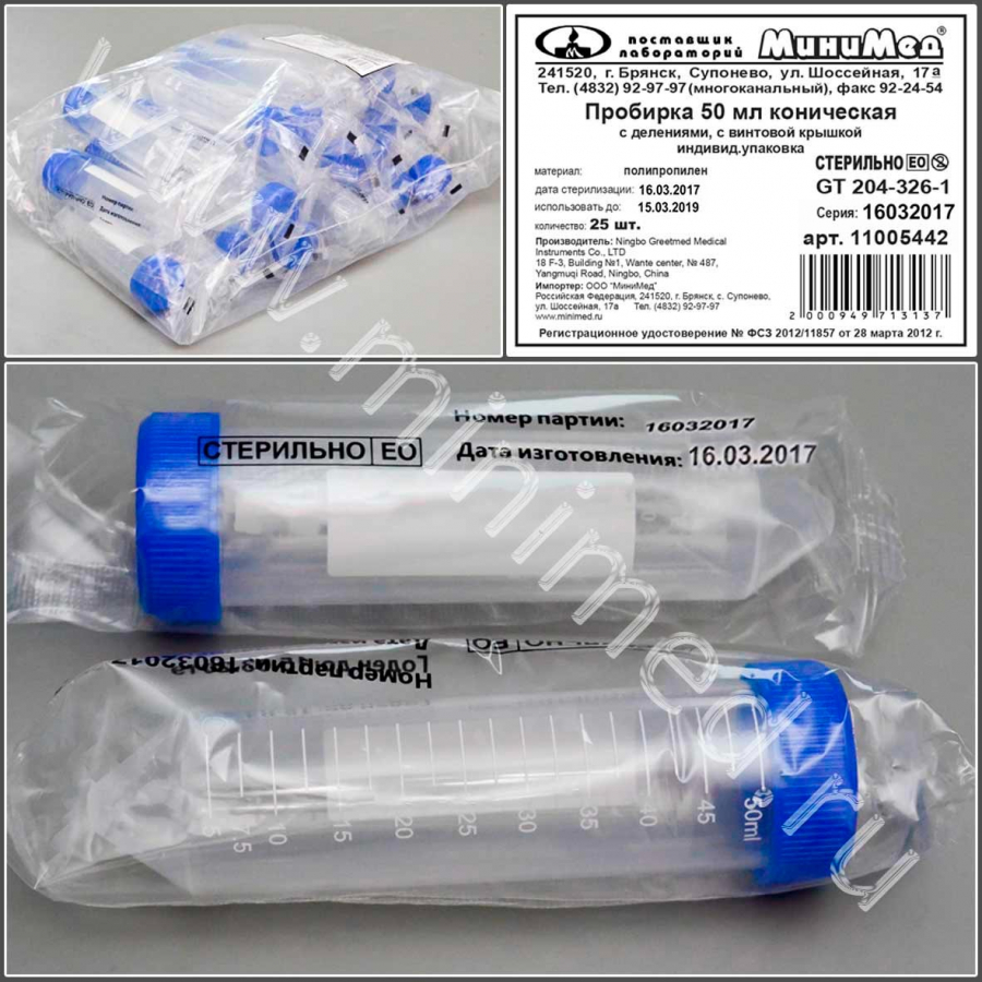 Материал пробирки................... полипропилен