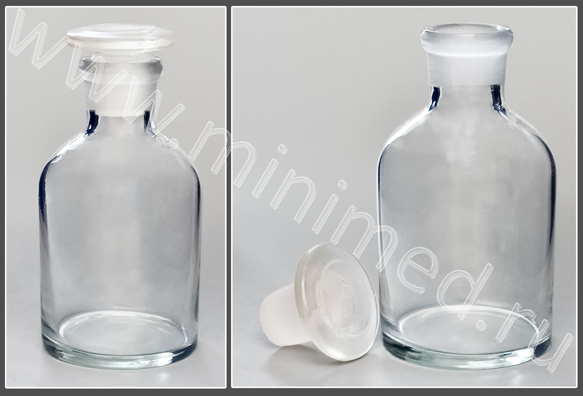 Склянка лабораторная 125 мл из светлого стекла с узкой горловиной и притертой пробкой, уп.12 /144 шт