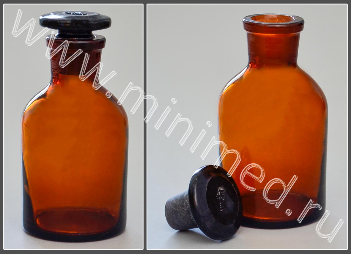 Склянка лабораторная 125 мл из темного стекла с узкой горловиной и притертой пробкой, уп. 12/144, 48 шт