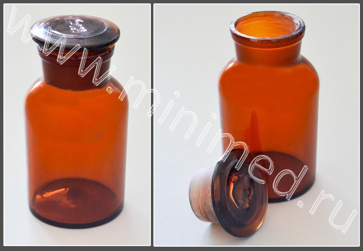 Склянка лабораторная 250 мл из темного стекла с широкой горловиной и притертой пробкой, уп.6/72, 48 шт