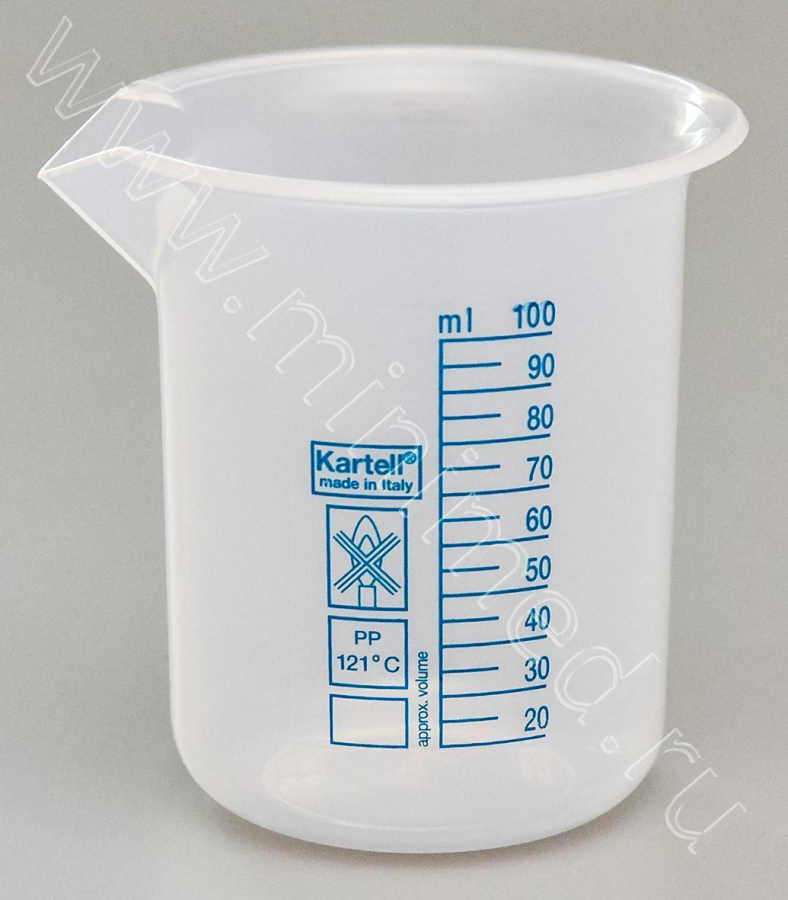 Предназначен для отмеривания ориентировочного объема веществ и иных процедур с нелетучими жидкостями. Изготовлен из специального особо прозрачного полипропилена, выдерживает автоклавирование при температуре +121°С в течение 15 минут и постоянную эксплуатацию при температуре до +100°С.