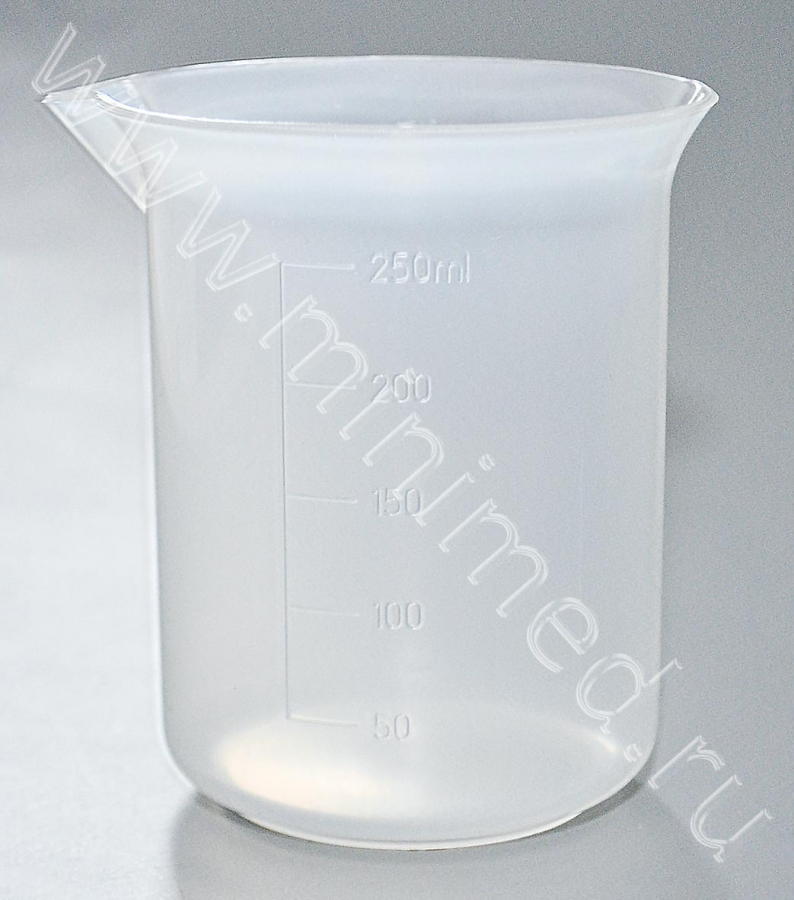 Предназначен для отмеривания ориентировочного объема веществ и иных процедур с нелетучими жидкостями. Изготовлен из специального особо прозрачного полипропилена, выдерживает автоклавирование при температуре +121°С. Стакан с носиком и рельефной градуировкой.
