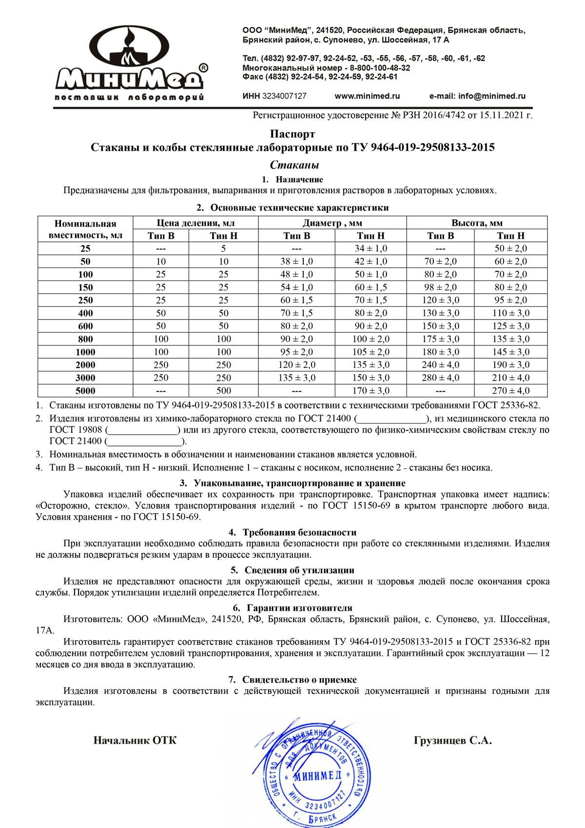 - Стаканы и колбы стеклянные лабораторные. МиниМед. Беларусь. РУ-1