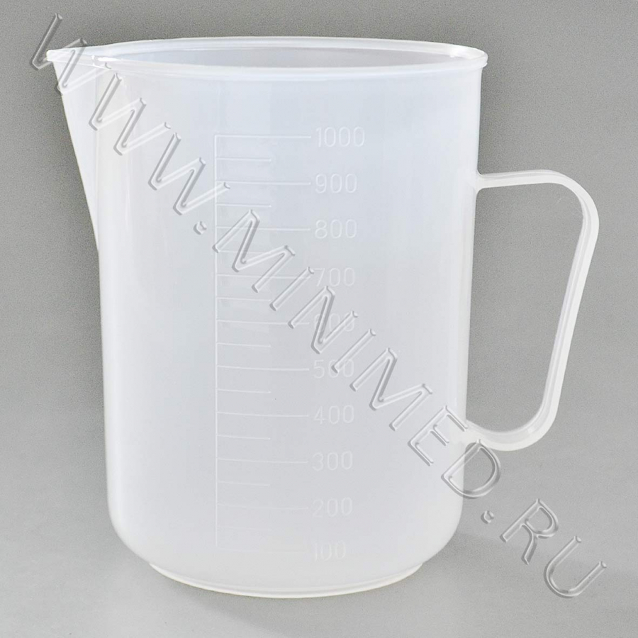 Стакан 1000 мл с носиком и ручкой градуированный, п/п, уп.1/100 шт.