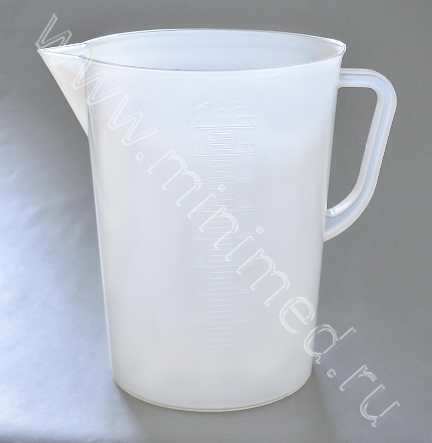 Стакан 5000 мл с носиком и ручкой градуированный, п/п, уп.1/20 шт