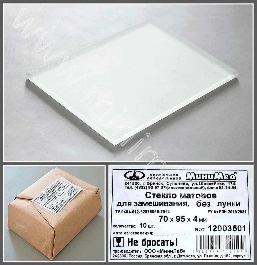 Стекло для микропрепаратов по ТУ 9464-012-52876859-2014, матовое для замешивания без лунки, 70*95*4 мм, МиниЛаб, уп.10шт/ кор.120 шт