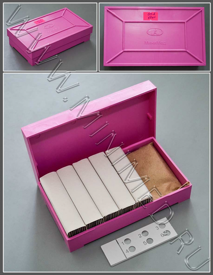 Стекло для микропрепаратов по ТУ 9464-012-52876859-2014, предметное, СПО-6 с 6-тью окошками, 26×76×2,0 мм, МиниЛаб, уп.50 шт/450 шт