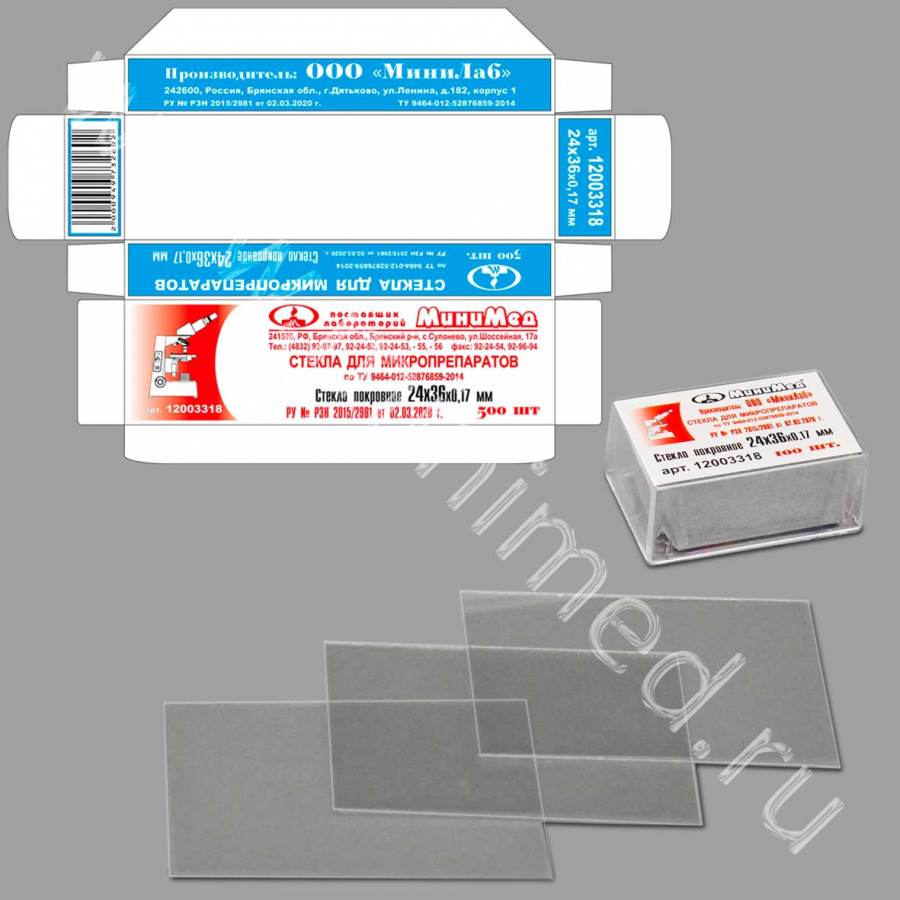 Стекло для микропрепаратов по ТУ 9464-012-52876859-2014, покровное 24*36 мм, уп.500 шт/кор.50 уп, МиниЛаб