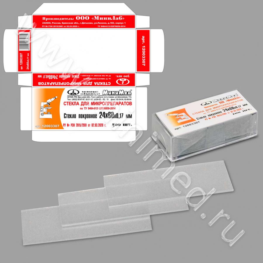 Стекло для микропрепаратов по ТУ 9464-012-52876859-2014, покровное 24*60 мм, МиниЛаб, уп.500 шт/ кор.20000шт./ 40уп.,