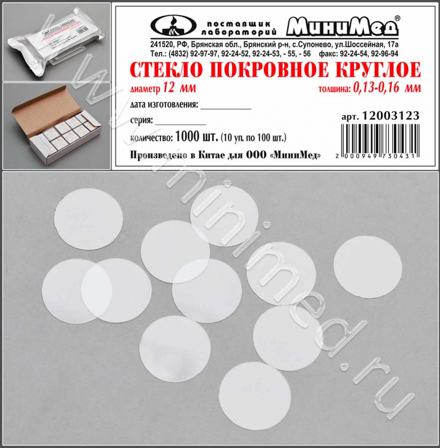Стекло покровное круглое диам.12 мм,толщ.0,13-0,16 мм, уп.1000 шт.