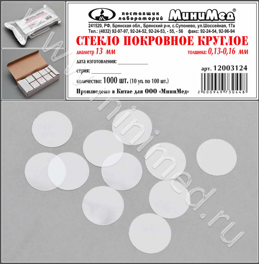 Стекло покровное круглое диам.13 мм,толщ.0,13-0,16 мм, уп.1000 шт.