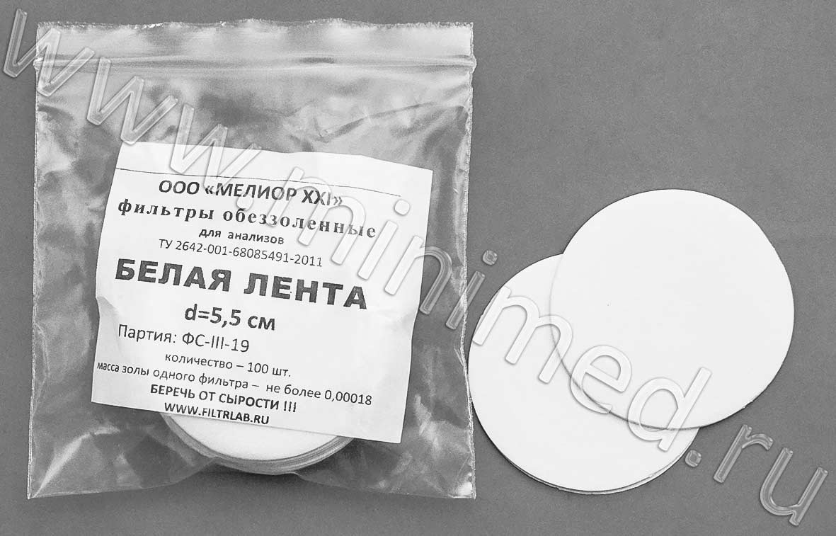 Фильтры обеззоленные, белая лента d 55мм, уп.100шт