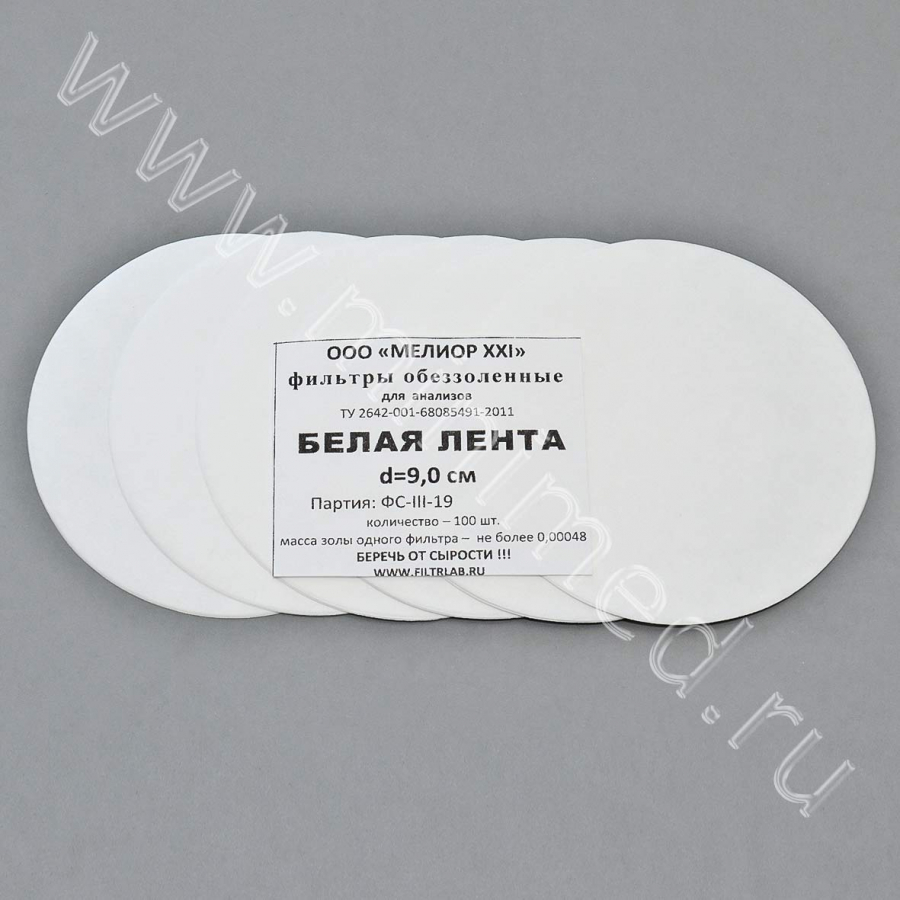 Фильтры обеззоленные "Белая лента" d 90 мм, уп.100 шт