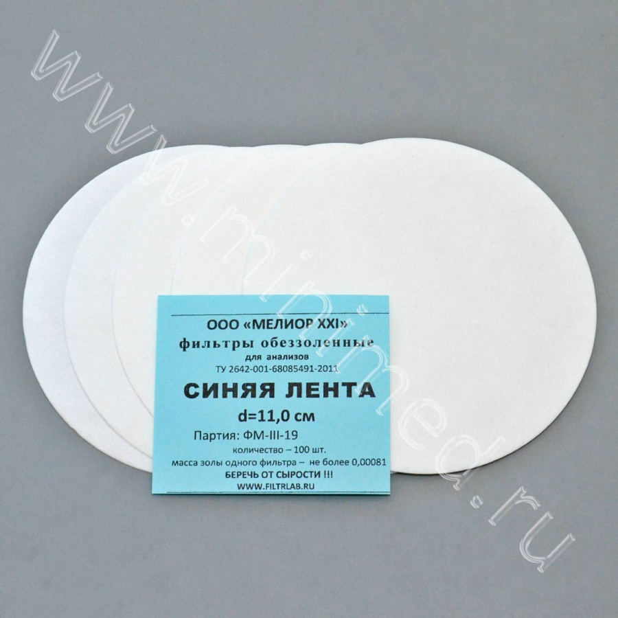 Фильтры обеззоленные "Синяя лента" d 110мм, уп. 100 шт