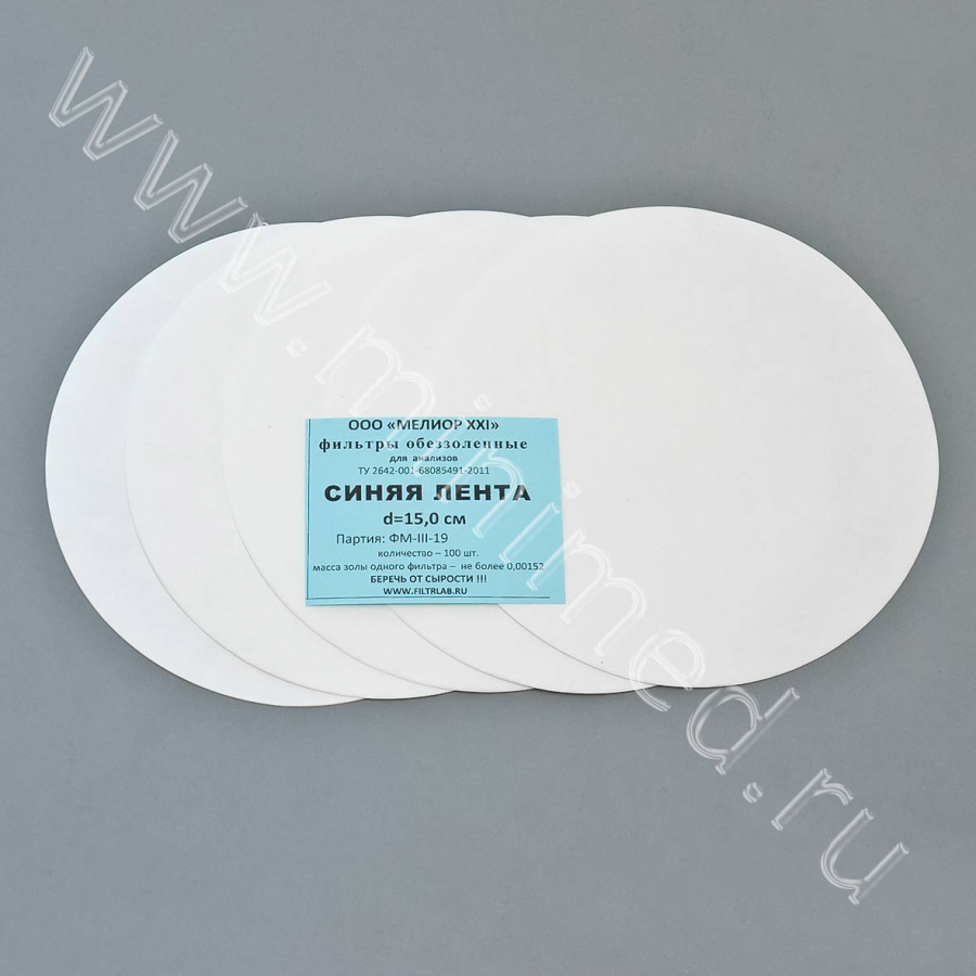 Фильтры обеззоленные "Синяя лента" d 150мм, уп. 100 шт