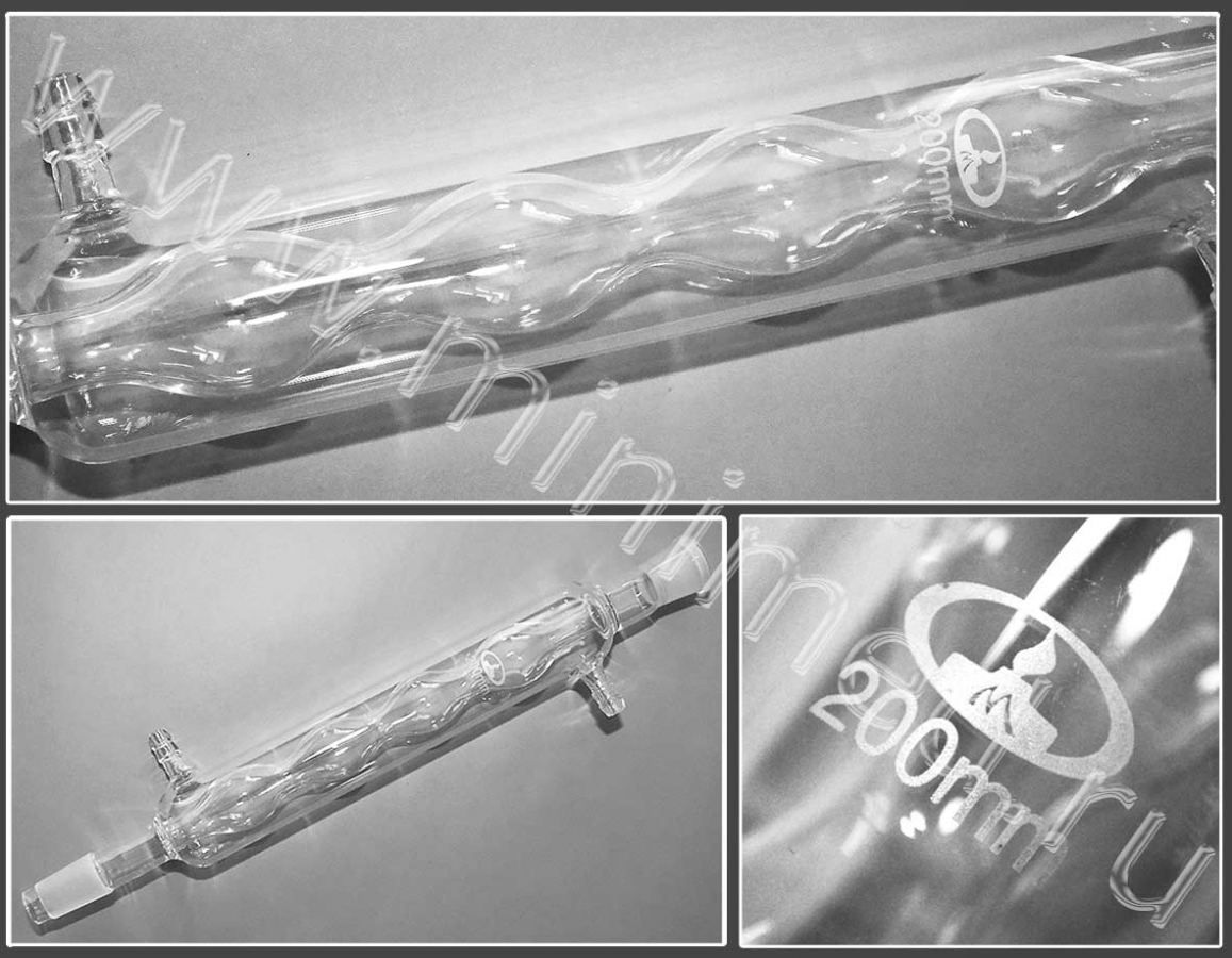 Предназначен для охлаждения и конденсации паров жидкостей при перегонке. Изготовлен боросиликатного стекла Boro 3.3.