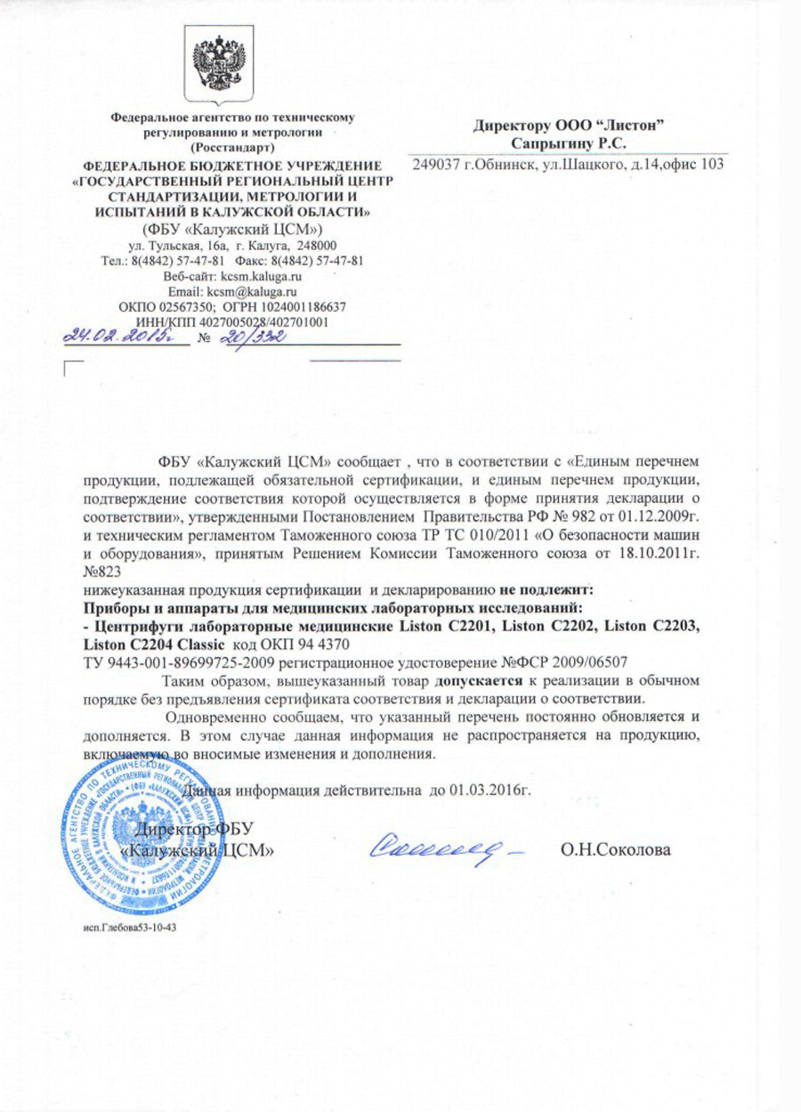 - Центрифуга-Liston-C2201_письмо-о-не-сертиф.