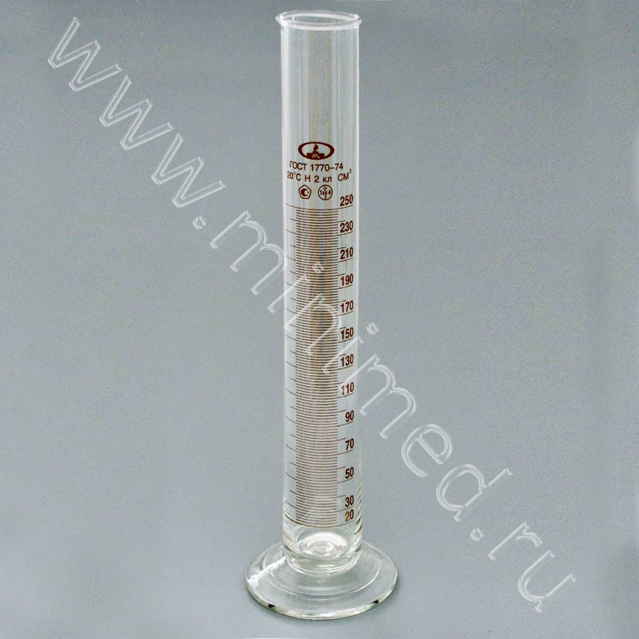 Цилиндр 1-250-2 с нос. и стекл. осн., ТУ 9464-013-52876351-2014, ГОСТ 1770-74, МиниМедПром, уп.2/ кор.48 шт,