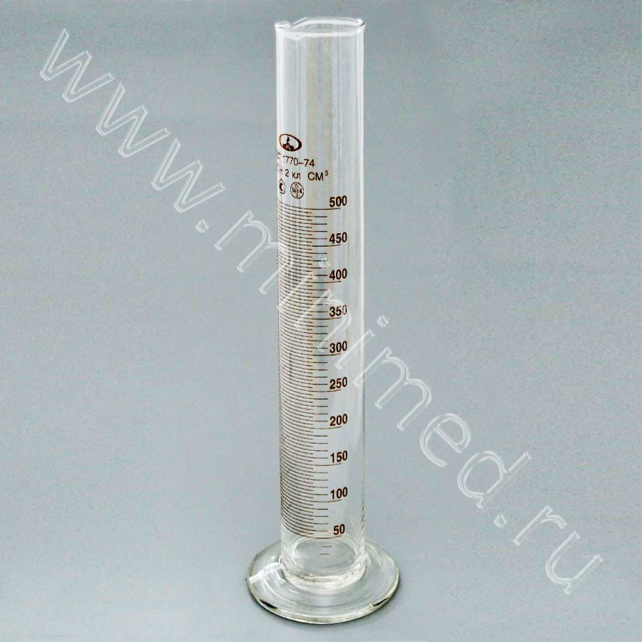 Цилиндр 1-500-2 с нос. и стекл. осн., ТУ 9464-013-52876351-2014, ГОСТ 1770-74, МиниМедПром, уп.2/ кор.32 шт,