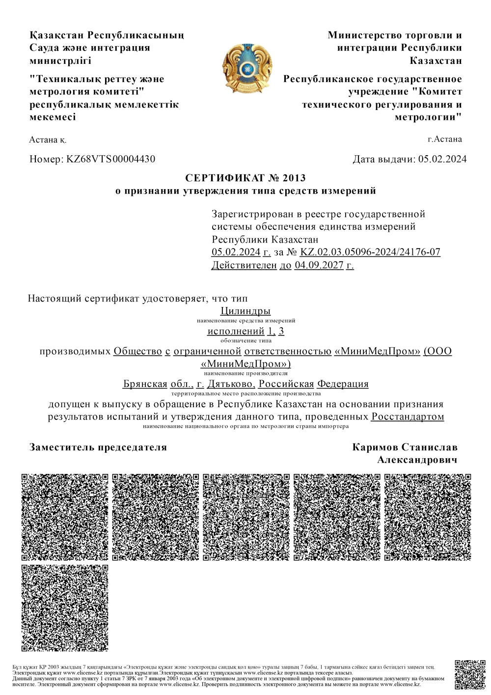 - Цилиндры исп. 1, 3. МиниМедПром. Сертификат об утверждении ТСИ до 04.09.2027