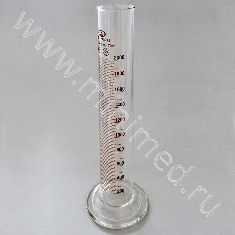 Цилиндр 1-2000-2 с нос. и стекл. осн., ТУ 9464-013-52876351-2014, ГОСТ 1770-74, МиниМедПром, уп.1/ кор.8 шт