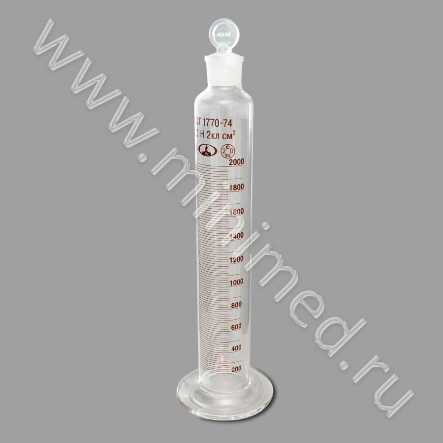 Цилиндр 2-2000-2 на стекл. осн., с пришл.пробк,, ТУ 9464-013-52876351-2014, ГОСТ 1770-74, МиниМедПром, уп. 1/8 шт,