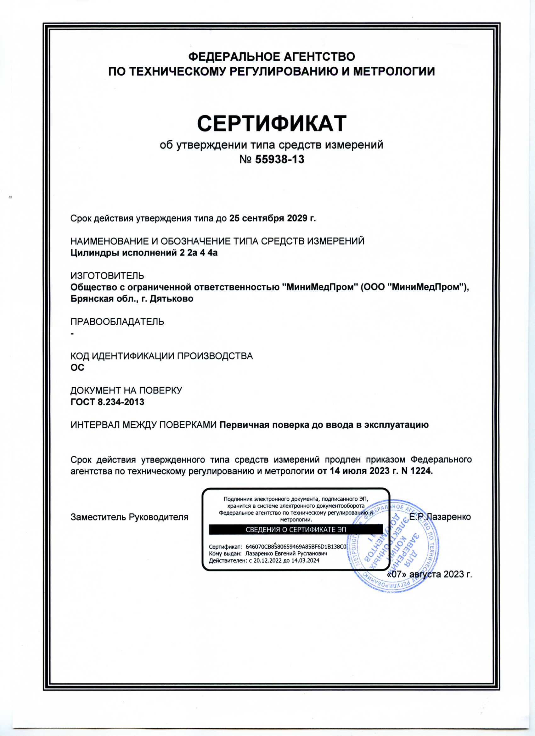 - Цилиндры исполнения 2,2а,4,4а. ММП. Сертификат об утверждении ТСИ до 25.09.2029
