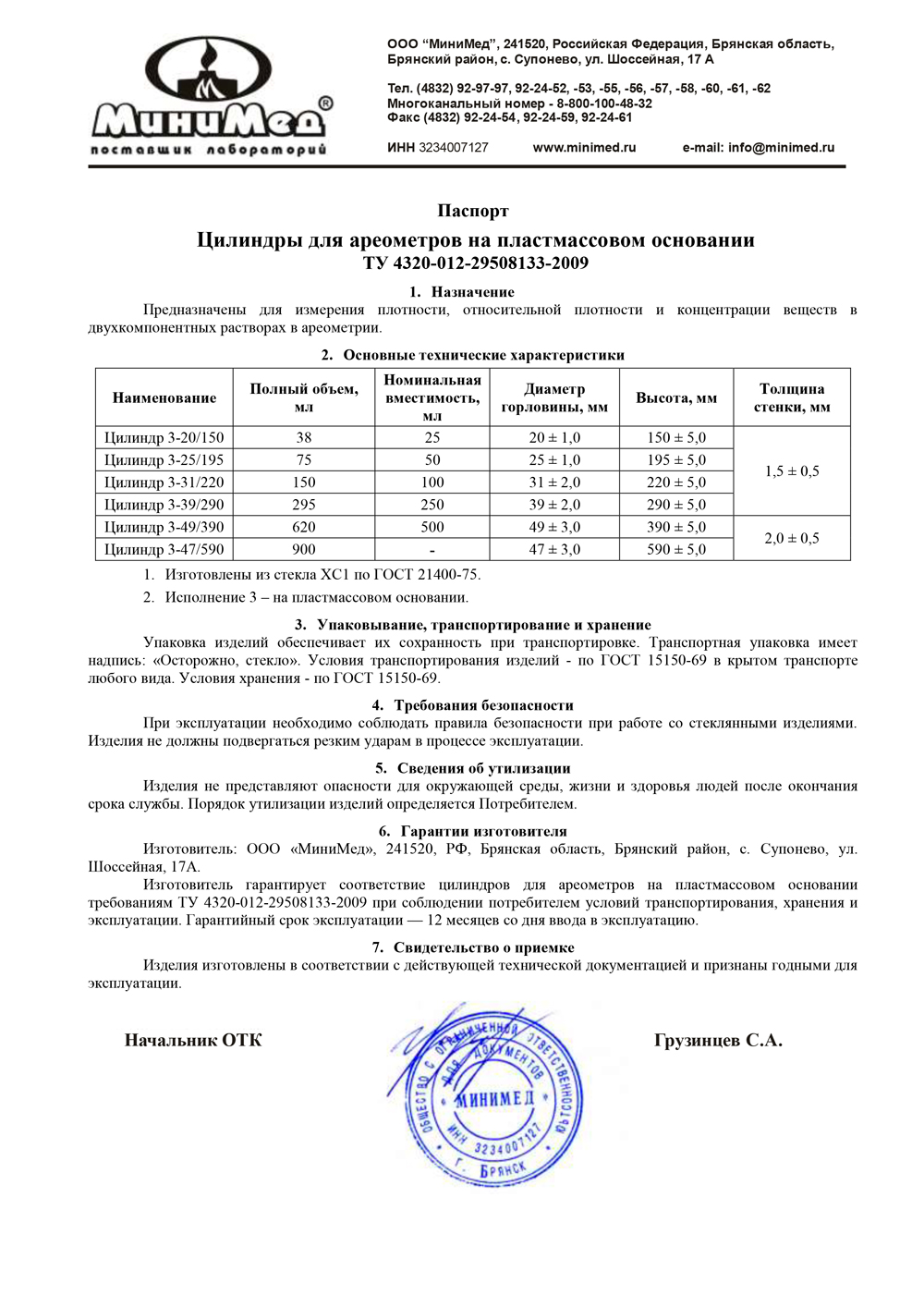 Цилиндр д/ареометров 3-25/195, МиниМед, уп.10шт