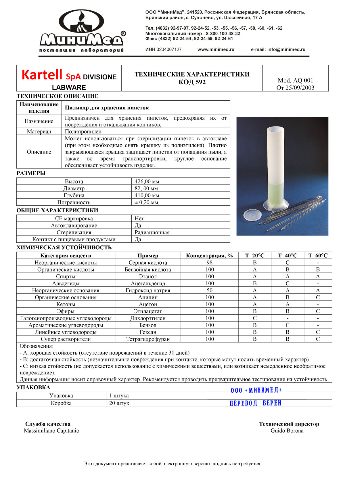 Цилиндр для хранения пипеток п/п, Каrtell, шт