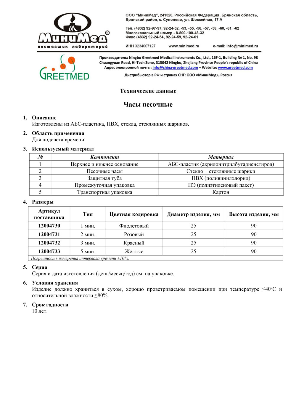 Разработаны для отсчета интервала времени лабораторных процедур. Маркировка номинала времени - на основании.