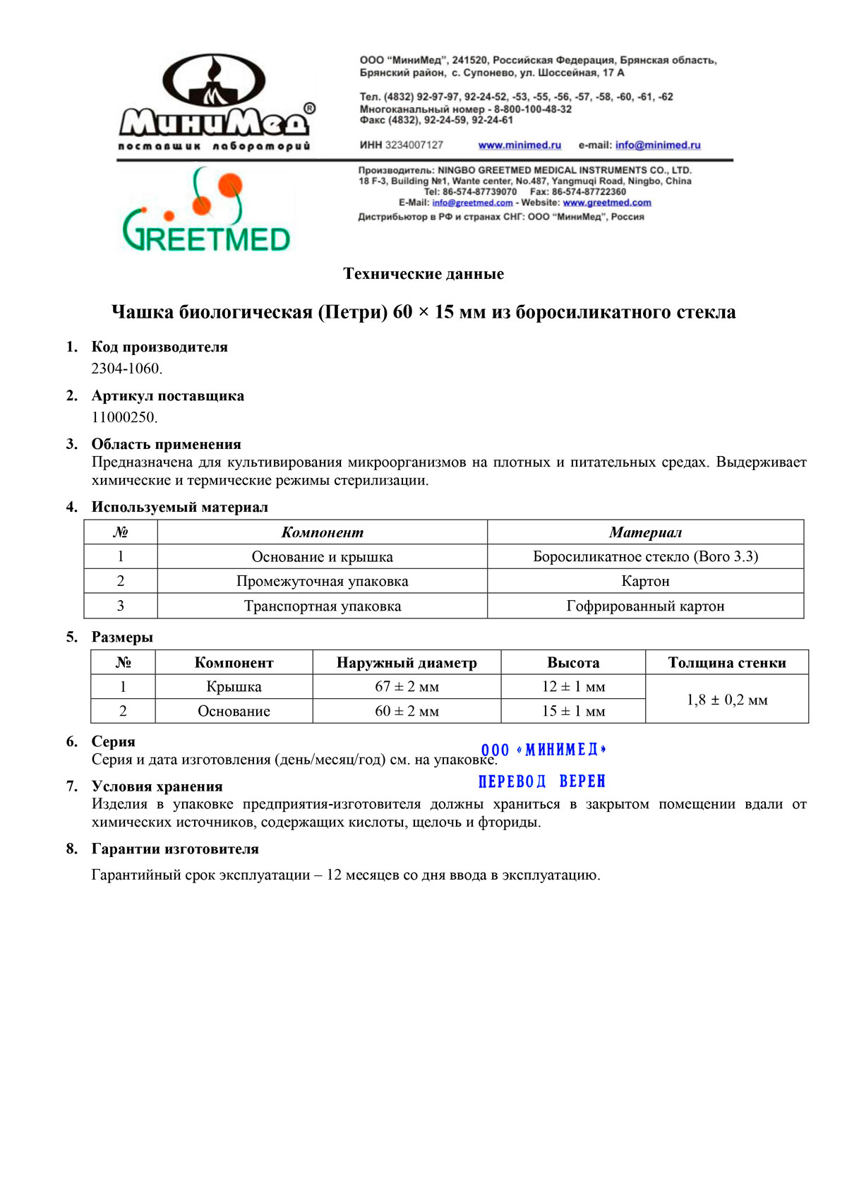 Предназначена для культивирования микроорганизмов на плотных и питательных средах. Выдерживает химические и термические режимы стерилизации. Термически стойкое стекло.