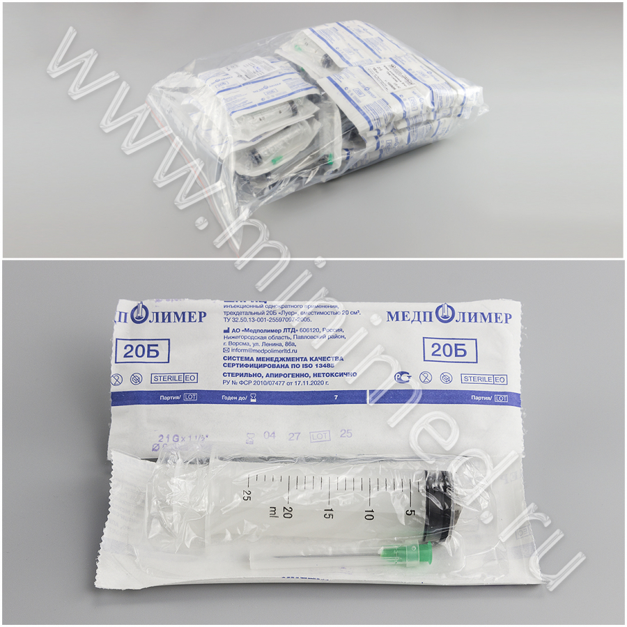 - Шприцы инъекционные 20Б мл. Медполимер ЛТД. п. 62