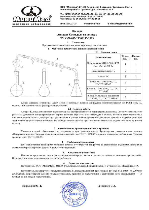Аппарат Къельдаля на шлифах предназначен для определения азота в органических веществах.