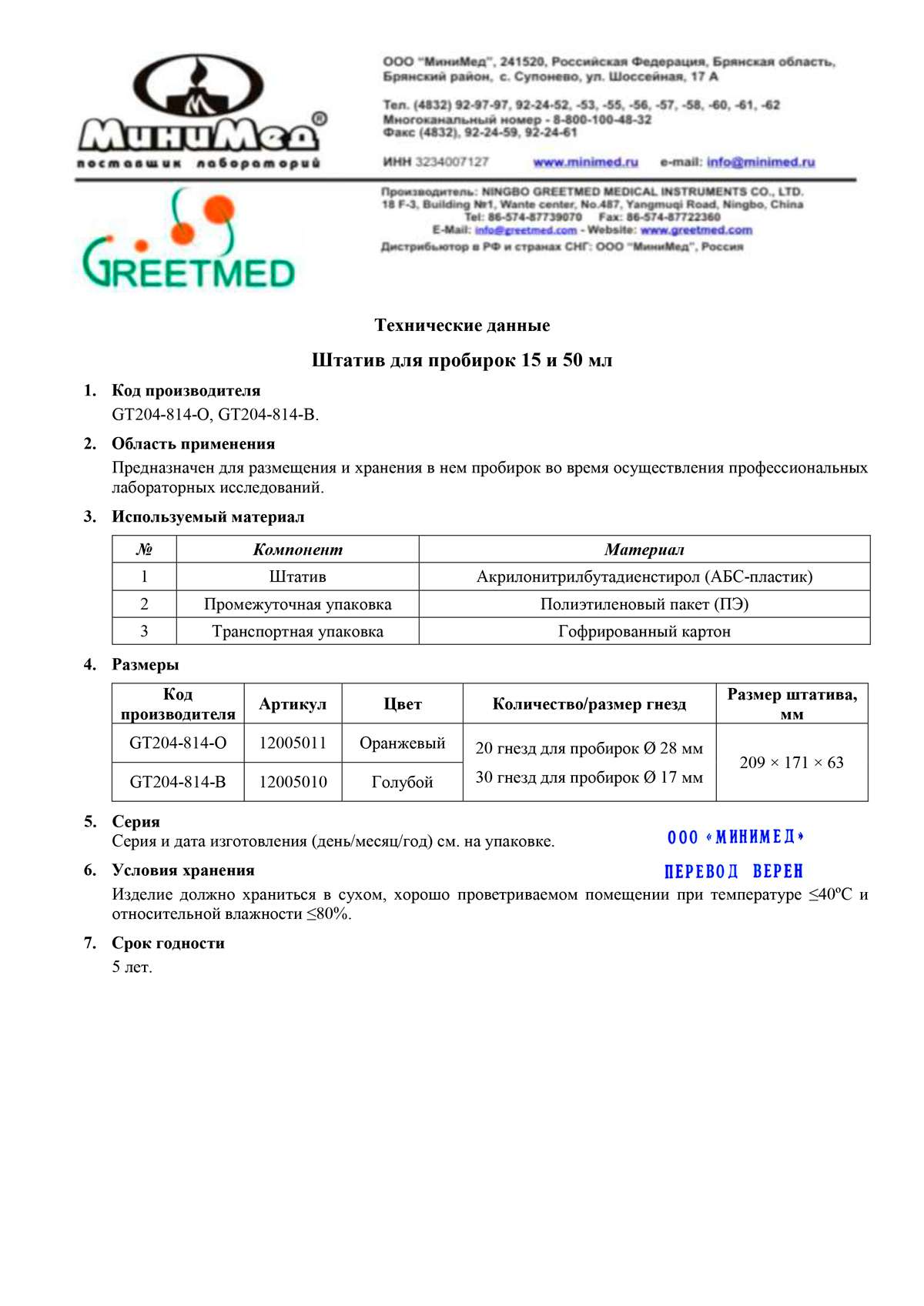 Предназначен для установки и хранения пробирок 15 мл и 50 мл.