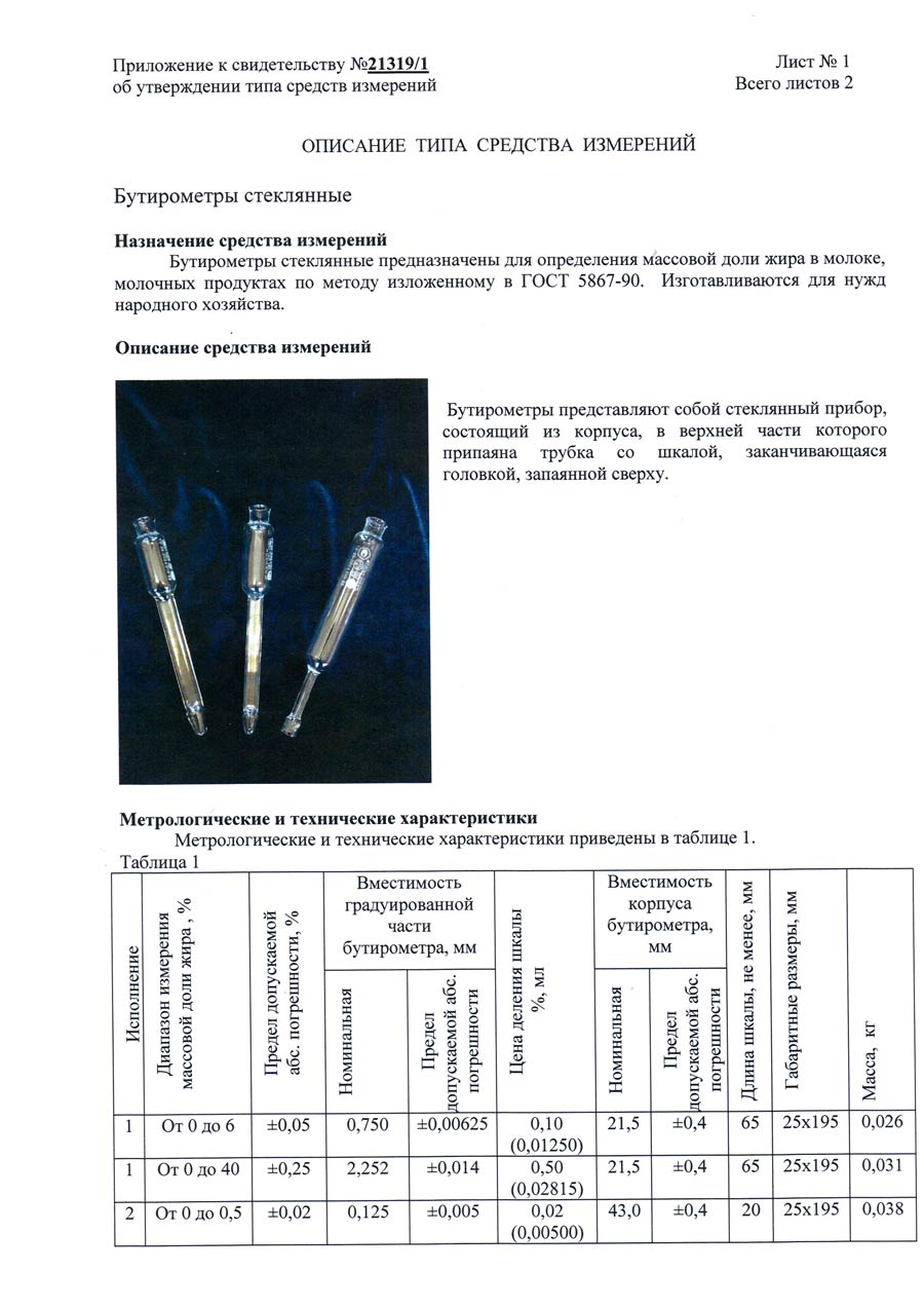 Бутирометр для сливок 1- 40 ТУ 25-2024,019-88, уп.1шт.