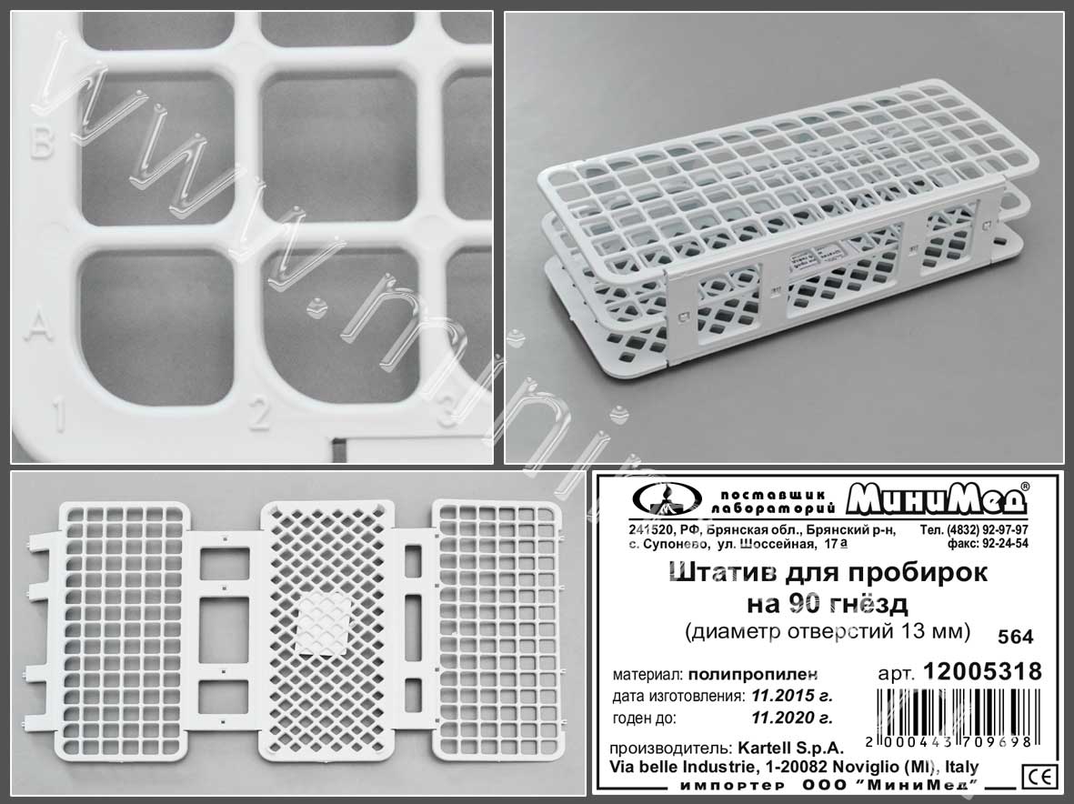 Алфавитно-цифровая маркировка позволяет точно идентифицировать местоположение образца в штативе. В транспортном или складском варианте имеет форму пластины, толщиной 3-4 мм.