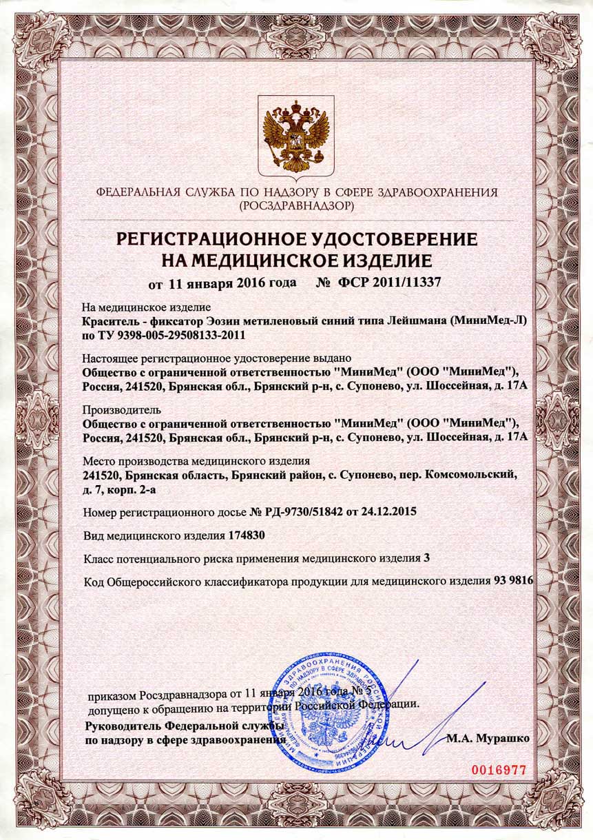 - Краситель-фиксатор Эозин метиленовый синий типа Лейшмана. Республика Казахстан.