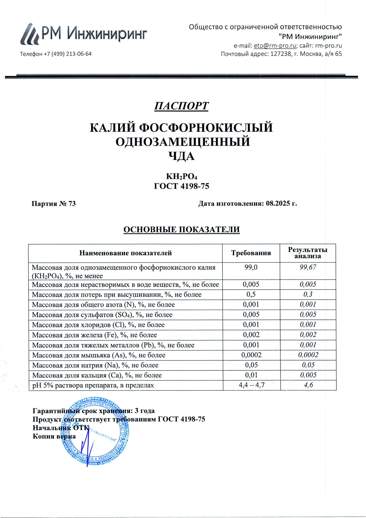Калий фосфорнокислый 1-зам, чда, 1 кг