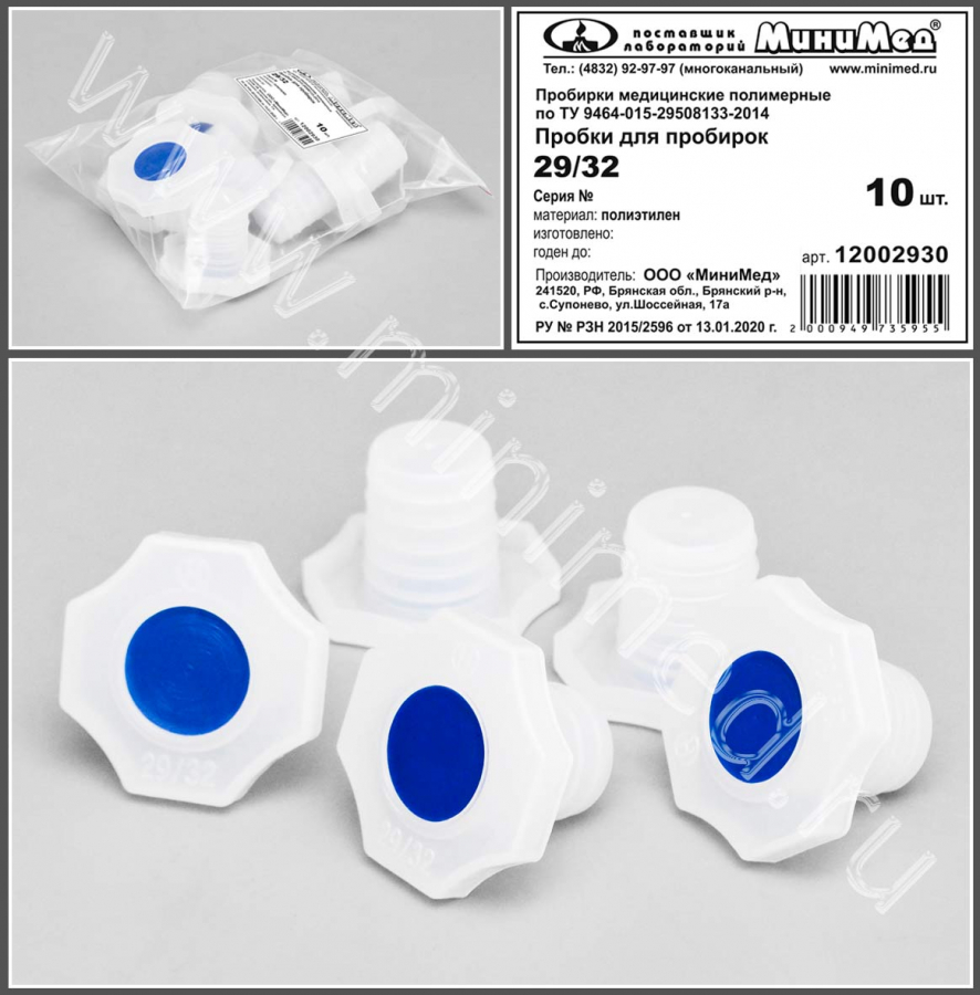 Пробка коническая 29/32,п/эт, уп.10 шт, ТУ 9464-015-29508133-2014, МиниМед