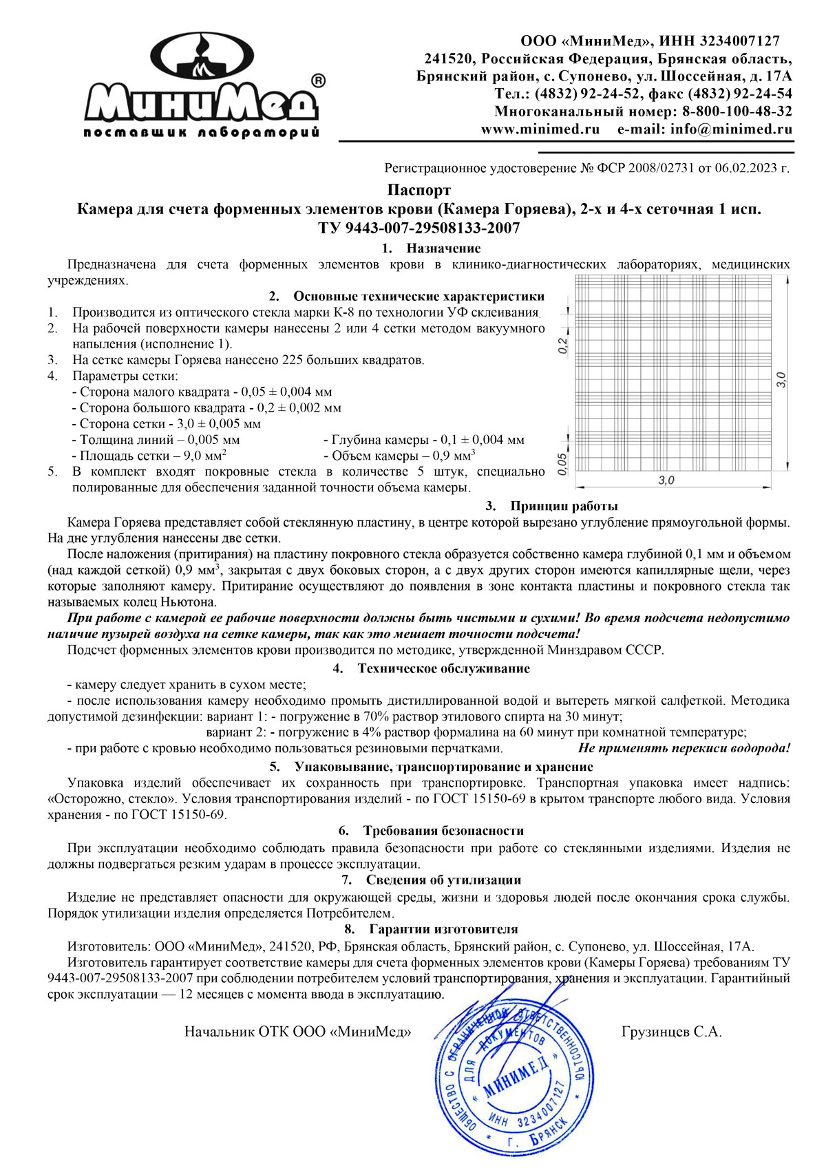 - Камера Горяева 2-х и 4-х сет. 1 исп. методом вакуумного напыления - 2023