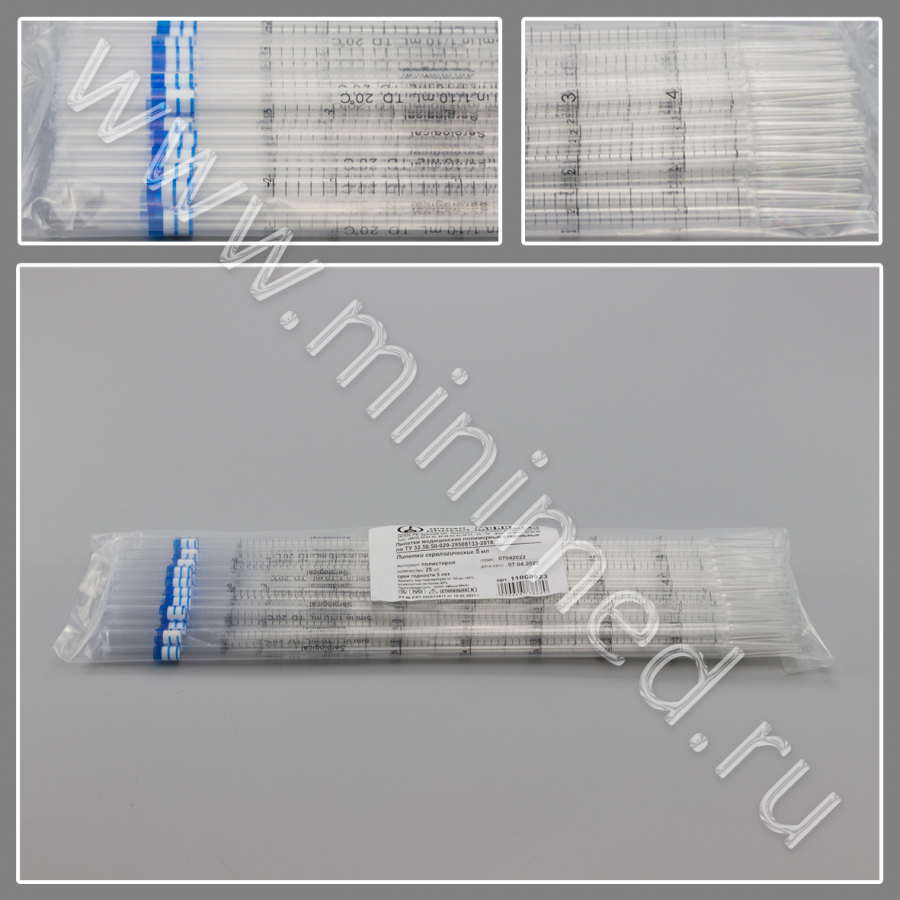 Пипетка серологическая 5 мл.стерильная,уп.25/500 шт., п/с, ТУ 32.50.50-029-29508133-2018, МиниМед
