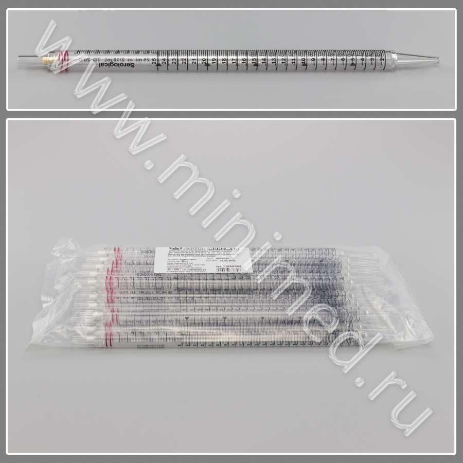 Пипетка серологическая 25 мл.стерильная, п/с, ТУ 32.50.50-029-29508133-2018, уп.25/350 шт, МиниМед