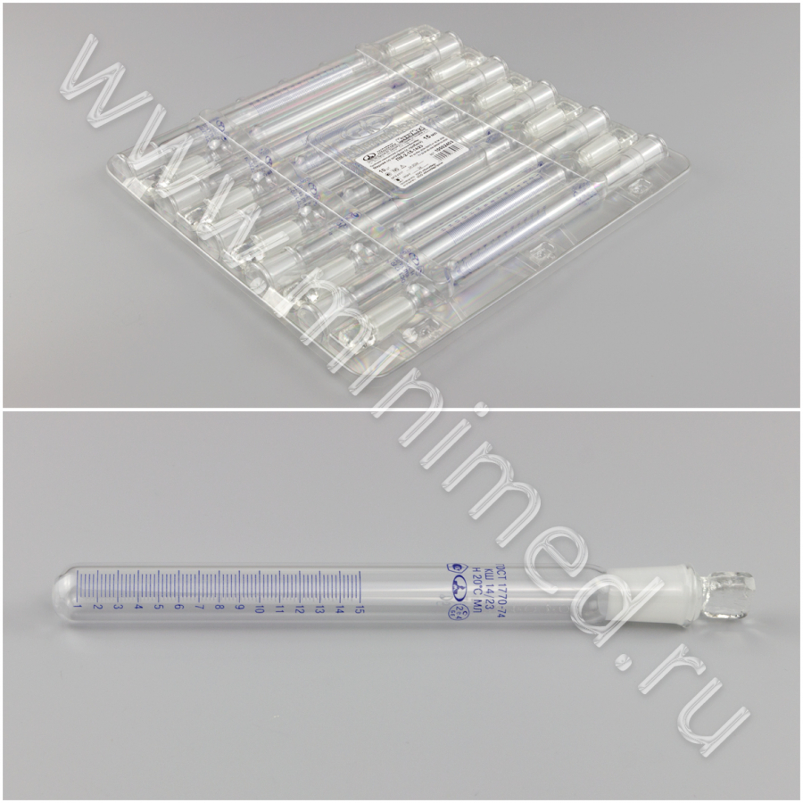 Пробирки медицинские стеклянные МиниМед по ТУ 32.50.50-039-29508133-2023: Пробирка мерная со шлифом и пробкой ПМ-2-15-14/23, уп.10 шт/кор.60шт
