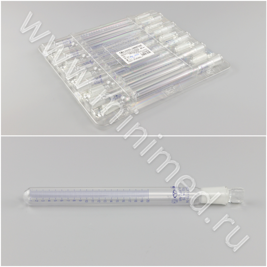 Пробирки медицинские стеклянные МиниМед по ТУ 32.50.50-039-29508133-2023: Пробирка мерная со шлифом и пробкой ПМ-2-20-14/23, уп.10 шт/кор.60шт
