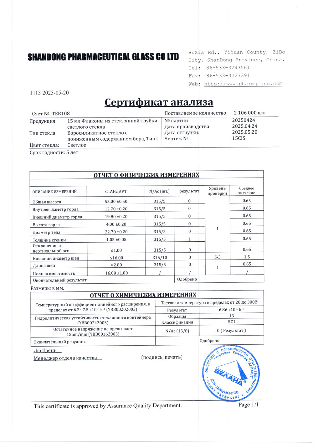 - Флакон с гладким горлом из светлой трубки объёмом 15 мл, п. 20250424