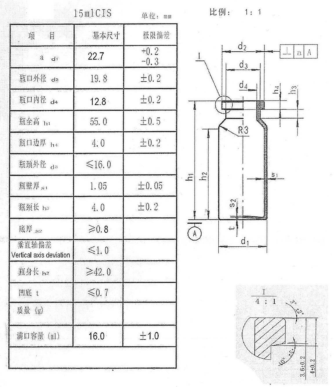 Внутренний диаметр горловины ................ 12,9±0,5 мм