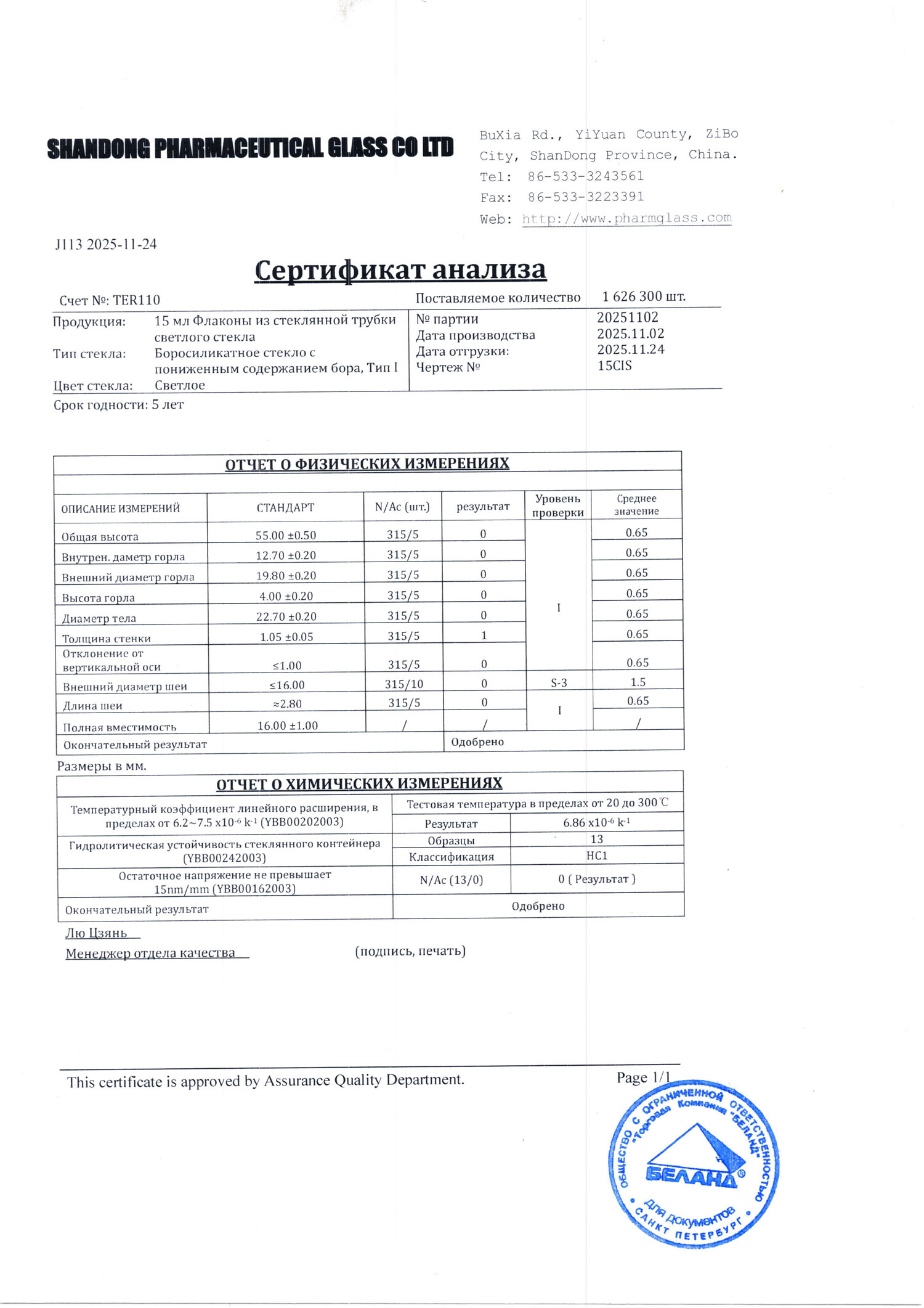 Предназначен для расфасовки, транспортировки и хранения химических, а также лекарственных средств. Изготовлен из боросиликатного стекла с пониженным содержанием бора (Тип I).